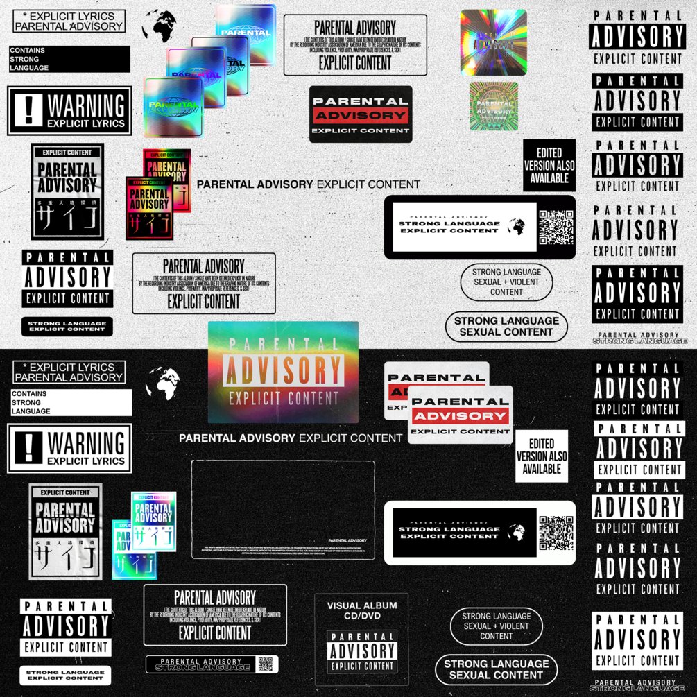 GFX KIt with 23 unique high-quality PNG "Parental Advisory" stickers guaranteed to up your GFX game + as an added bonus two globe logos, 12 Unique CD logos 4 Dolby Logos as well as 2 Rated R Logos.